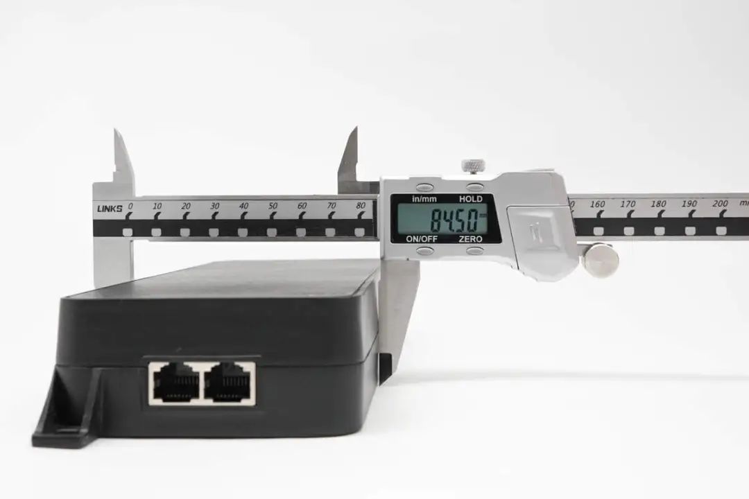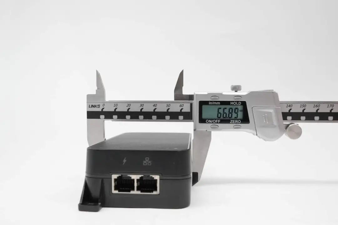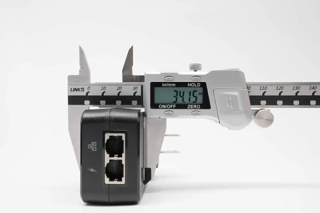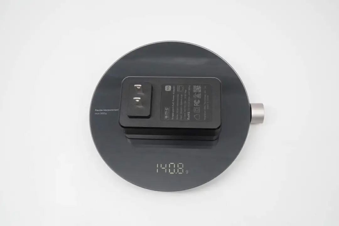 实测雅晶源科技 15W 桌面式 ACTIVE PoE电源适配器长 93.62mm。