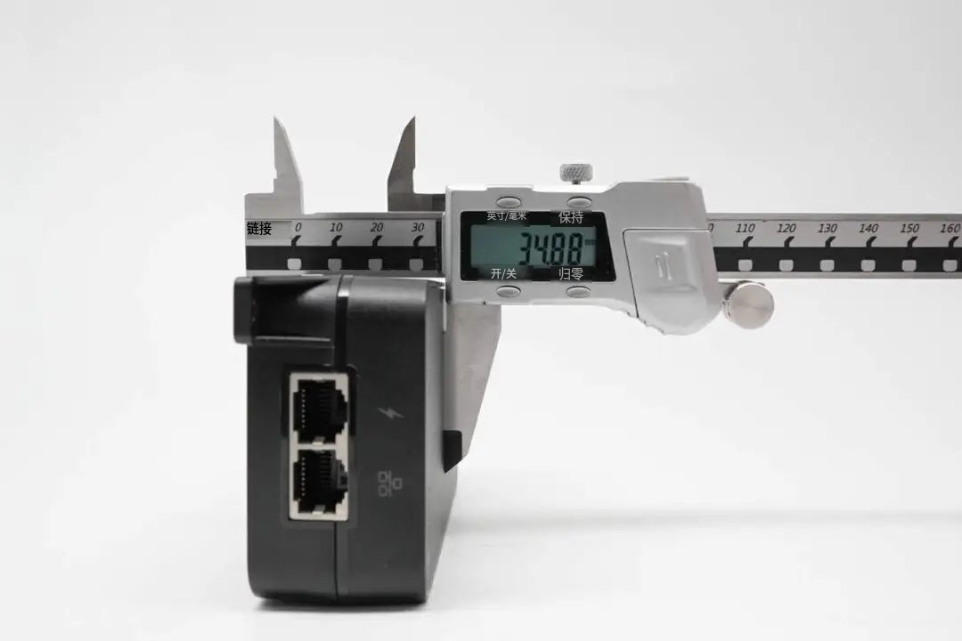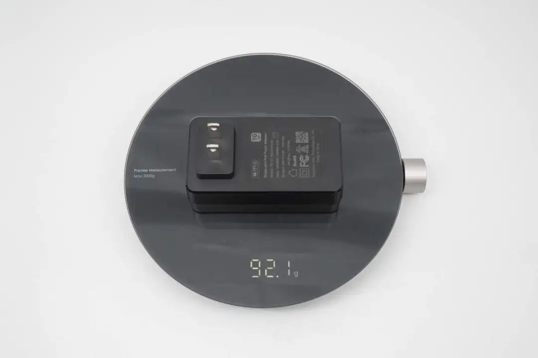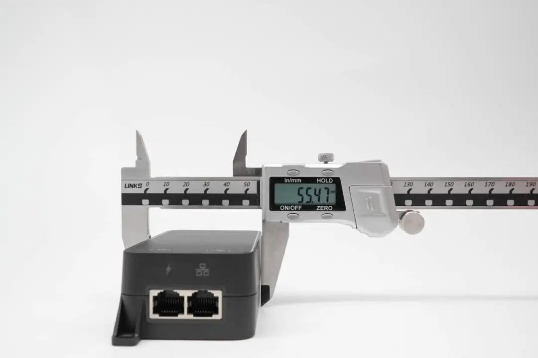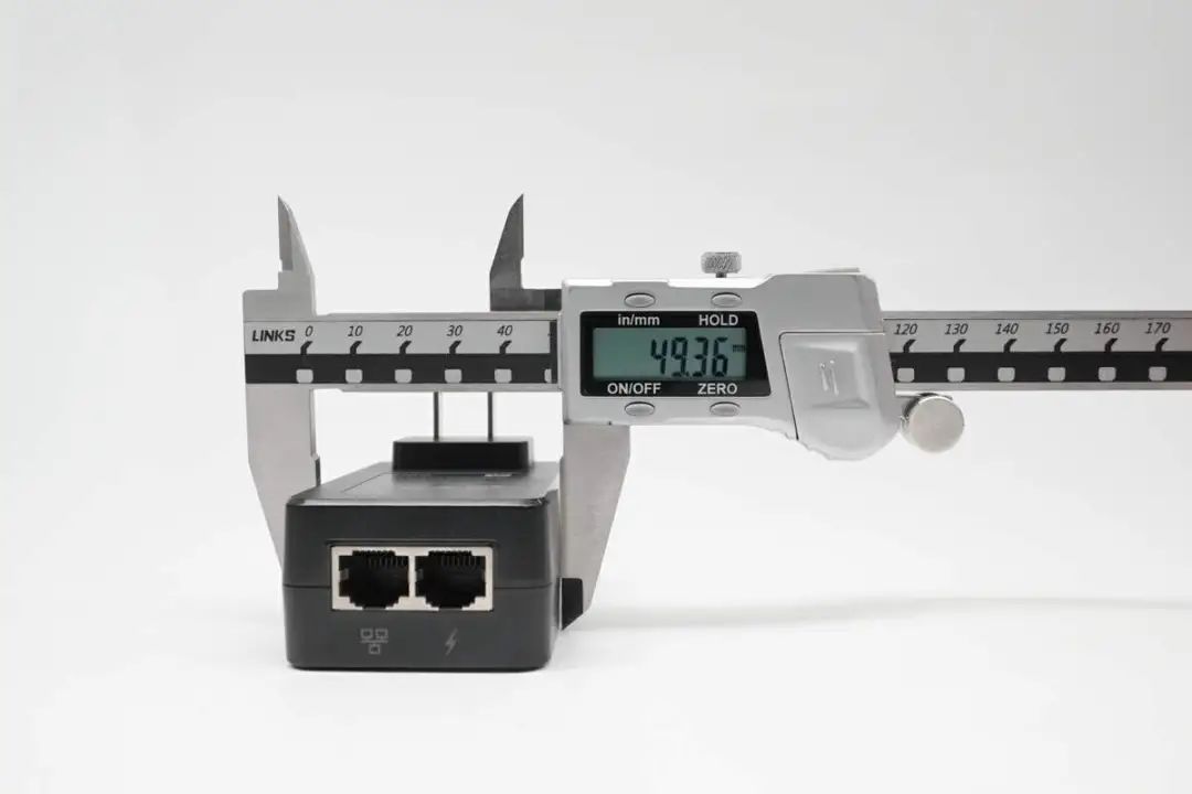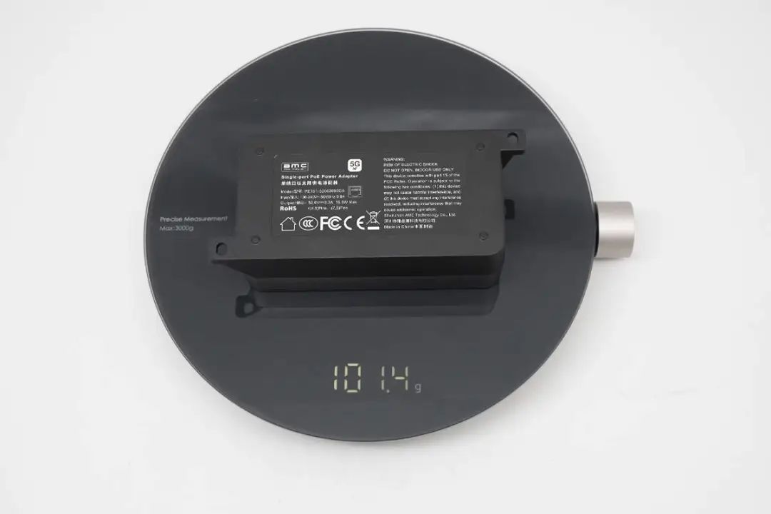实测雅晶源科技 15W 桌面式 ACTIVE PoE电源适配器长 93.62mm。