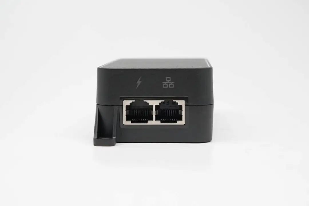 雅晶源科技 15W 桌面式 ACTIVE PoE 电源适配器的网口,支持高达 5Gbps 的数据传输速率,方便设备之间网络传输。