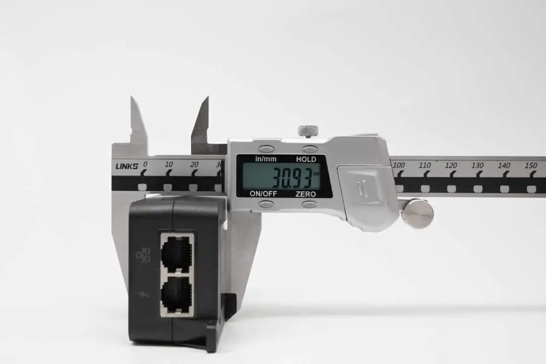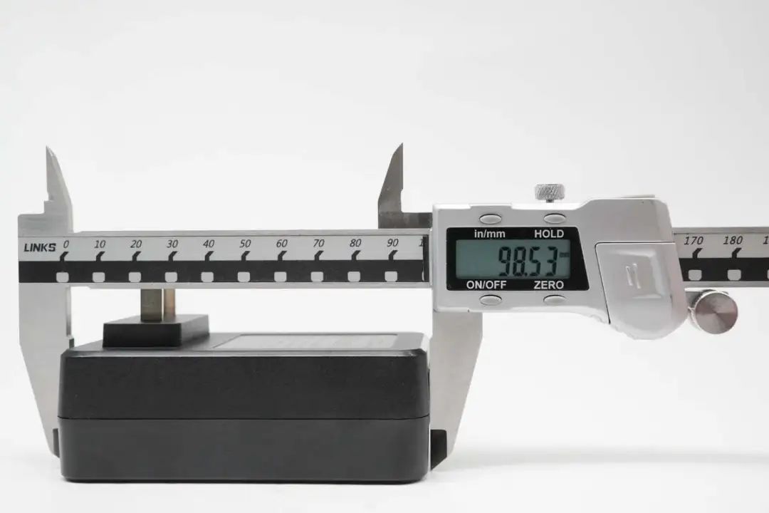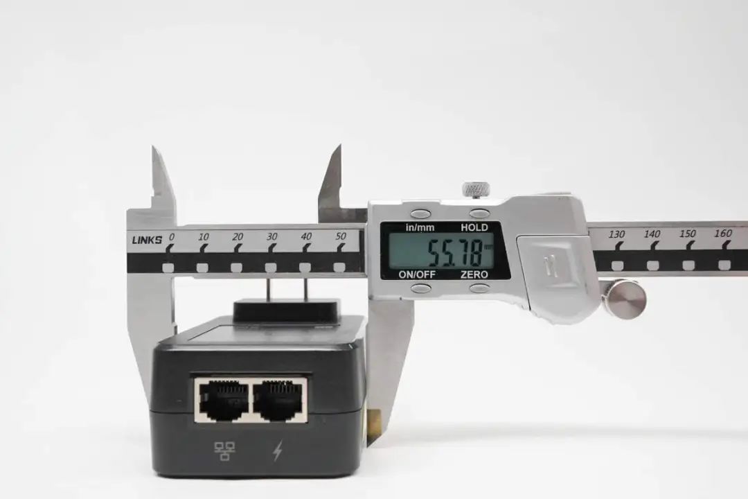 实测雅晶源科技 30W 插墙式 ACTIVE PoE 电源适配器长 98.53mm。
