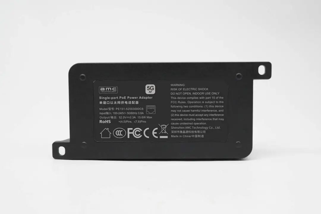 雅晶源科技 60W PoE 电源型号为 PE601-56010800C6,输入规格为 100-240V~50/60Hz 1.5A,输出支持最高 56V 1.08A ,适用于大功率物联网设备。产品已通过CCC、CE 、FCC以及 NRTL安全认证。该电源适配器符合 IEEE802.3bt/Type-3 标准、RoHS 标准以及 IEC60950/62368 标准。
