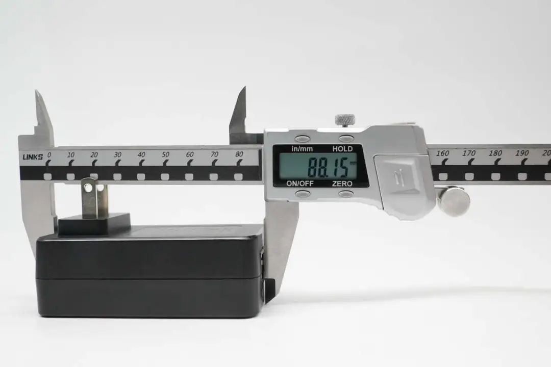 实测雅晶源科技 15W 插墙式 ACTIVE PoE 电源适配器长 88.15mm。