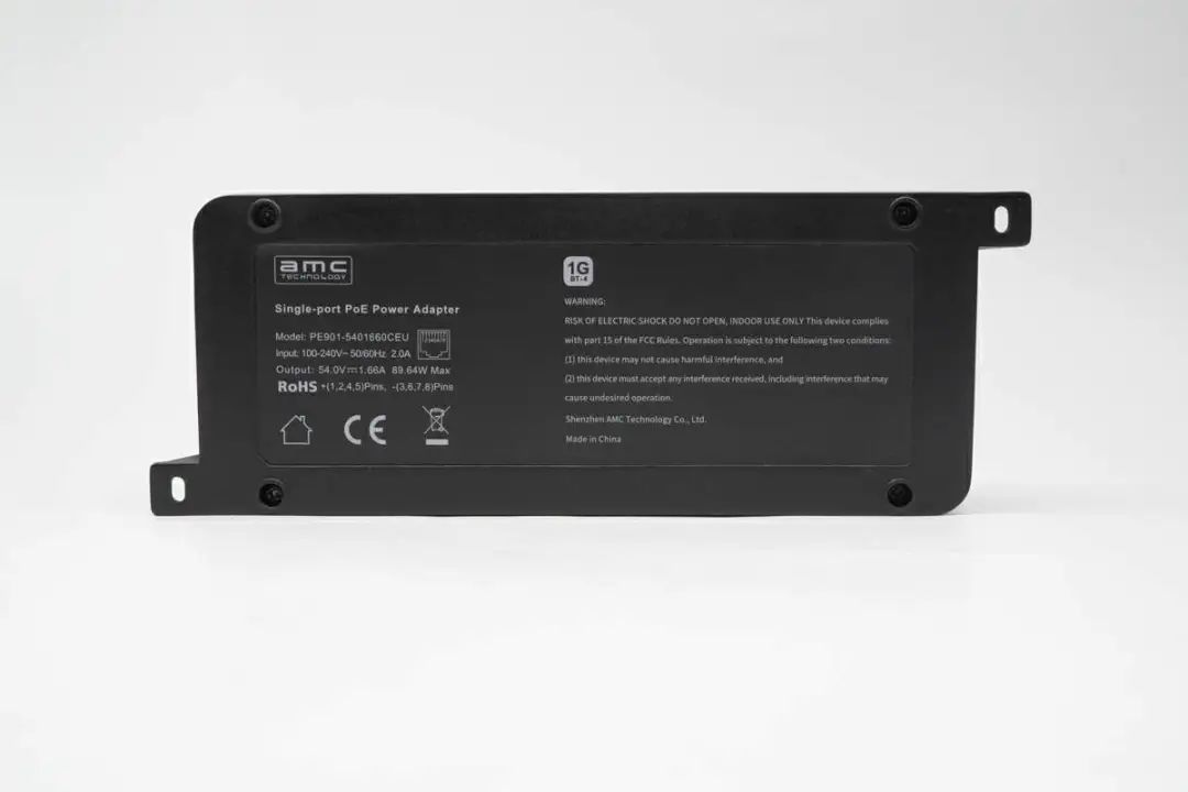 这款 PoE 电源型号为 PE901-5401660CEU,输入规格为 100-240V~50/60Hz 2.0A,输出支持最高 54V 1.66A ,适用于医疗设备、高功率 LED 灯和大功率智能显示屏等。产品已通过 CE 安全认证,该电源适配器符合 IEEE802.3bt/Type-4 标准、RoHS 标准以及 IEC60950/62368 标准。