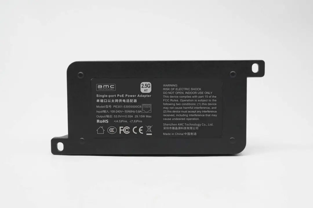 电源型号为 PE301-53005500C6,输入规格为 100-240V~50/60Hz 0.8A,输出支持最高 53V 0.55A ,应用于高功率的无线接入点和带有云台功能的视频监控摄像头等设备。产品已通过 FCC、CCC、CE 等多项安全认证,该电源适配器符合 IEEE802.3at/Type-2 标准、RoHS 标准以及 IEC60950/62368 标准。