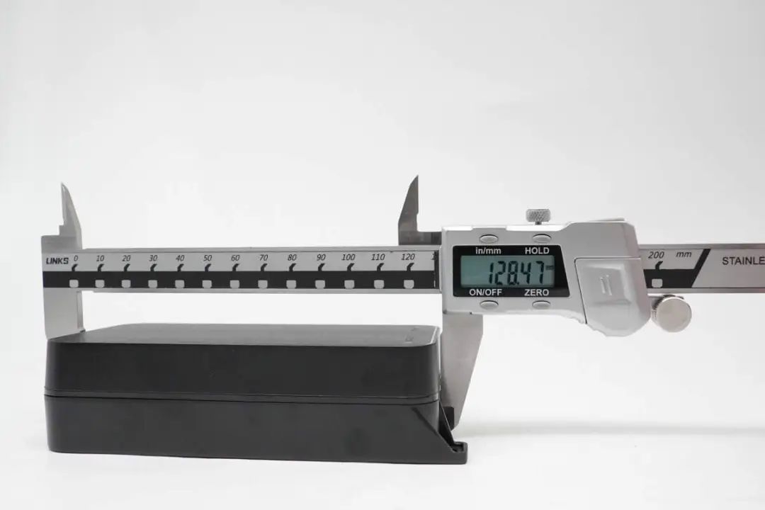 实测雅晶源科技 60W PoE 电源适配器长 128.47mm。
